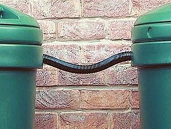 Water butts linked by overflow pipes